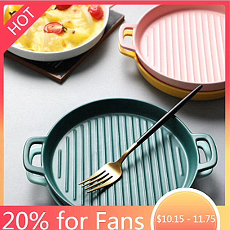 Бинауральная форма для выпечки, блюдо для пиццы, круглая тарелка, креативная керамическая духовка, Западная кухонная посуда, микроволновая печь, плоская тарелка