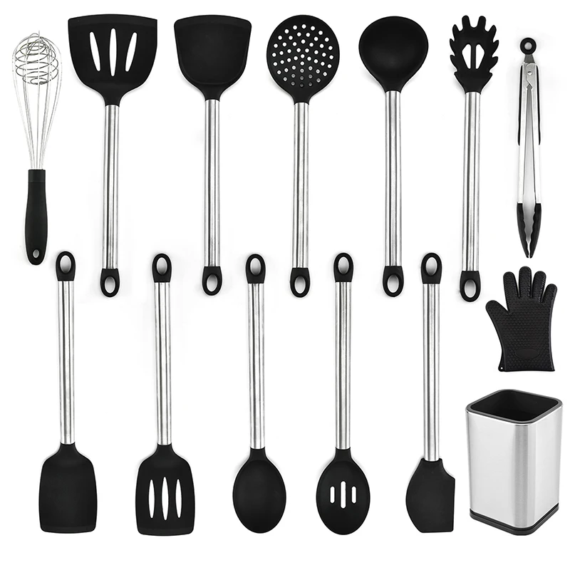 13 шт силиконовые кухонные принадлежности набор из нержавеющей стали Ручка Тернер шпатель ложка щипцы венчик кухонная посуда набор кухонны...