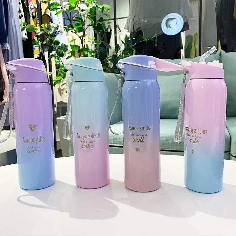 Bpa БЕСПЛАТНО Изоляцией соломы градиент цвет переносной чайник путешествия вакуумная чайная чашка Спорт мой бутылка для воды Термос колбы л...