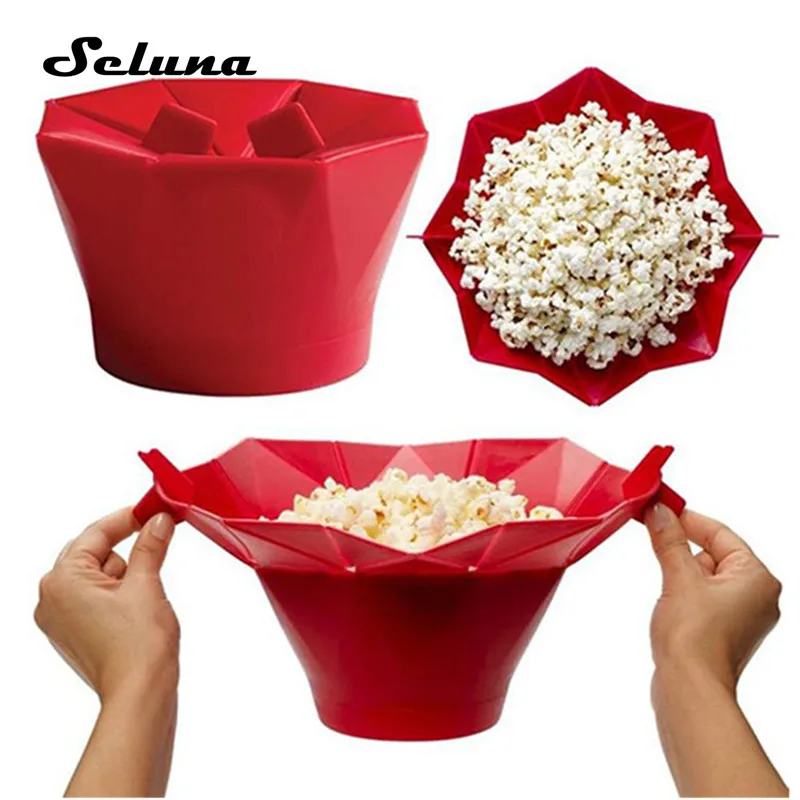 Seluna микроволнового попкорна силиконовые попкорн Поппер коробка закуски ведро Складное чаша красный зеленый складной Кухня выпечки Инстру...