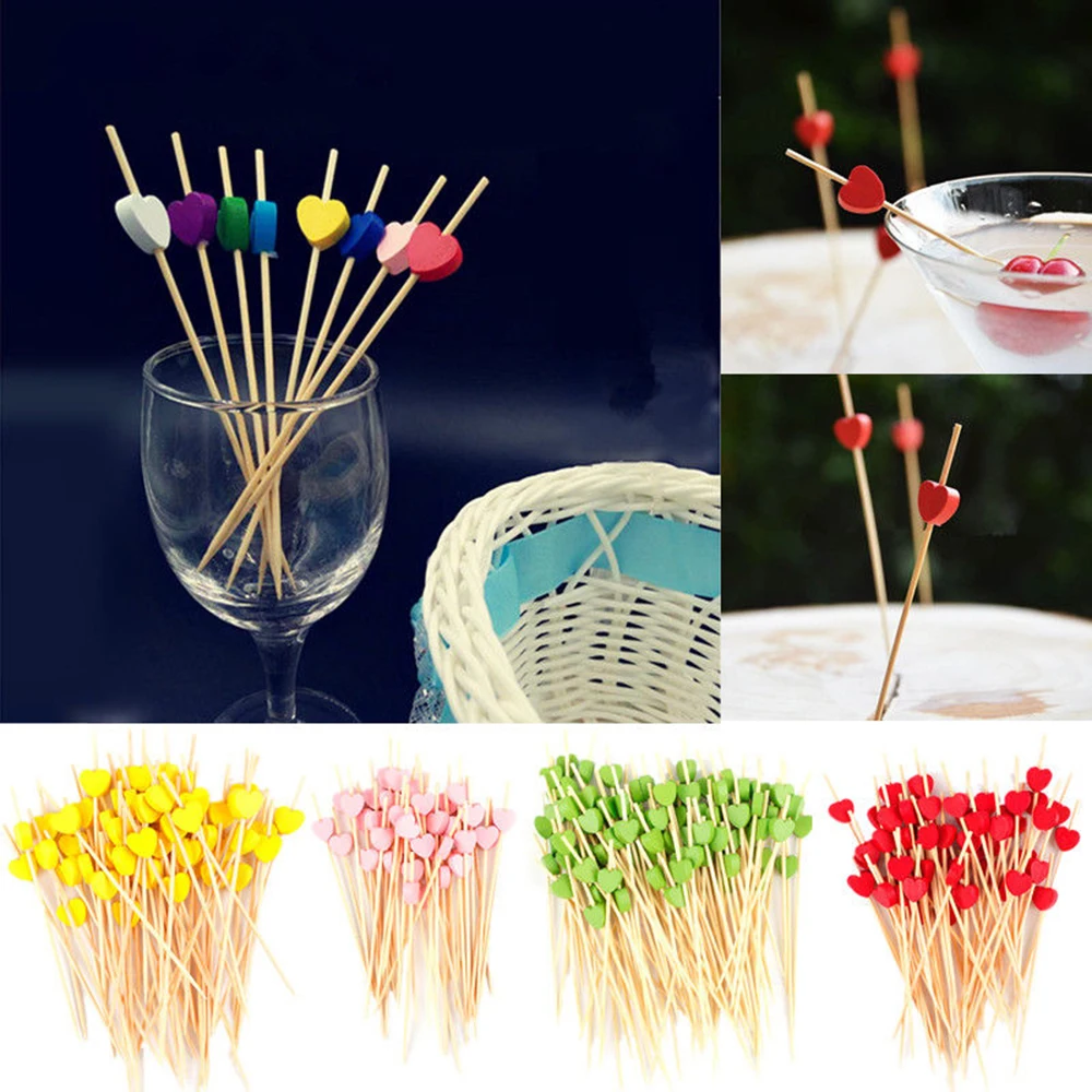 Новинка 100 шт 12 см одноразовые бамбуковые шпажки в форме сердца фрукты десерт торт знак коктейль палочка Милая еда буфет кекс Топпер Вечерни...