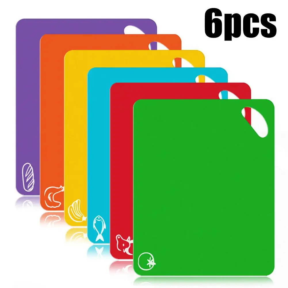 6 шт./компл., пластиковая кухонная разделочная доска, набор ковриков, нескользящая разделочная доска, безопасная для посудомоечной машины, 6 цветов, для кухонных принадлежностей