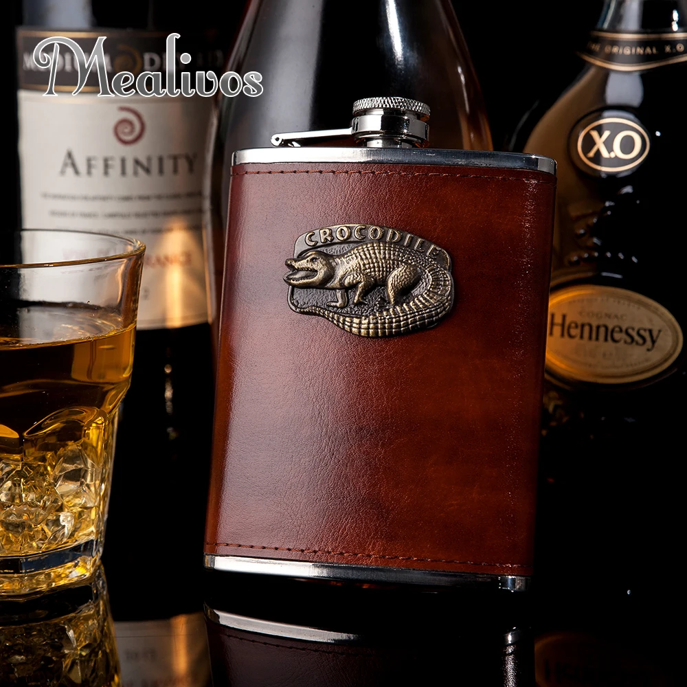 Модная фляга 8 унций пищевой нержавеющей стали набедренная фляга для жидкости крокодиловая Коричневая кожа спирт ликер фляга для виски под...
