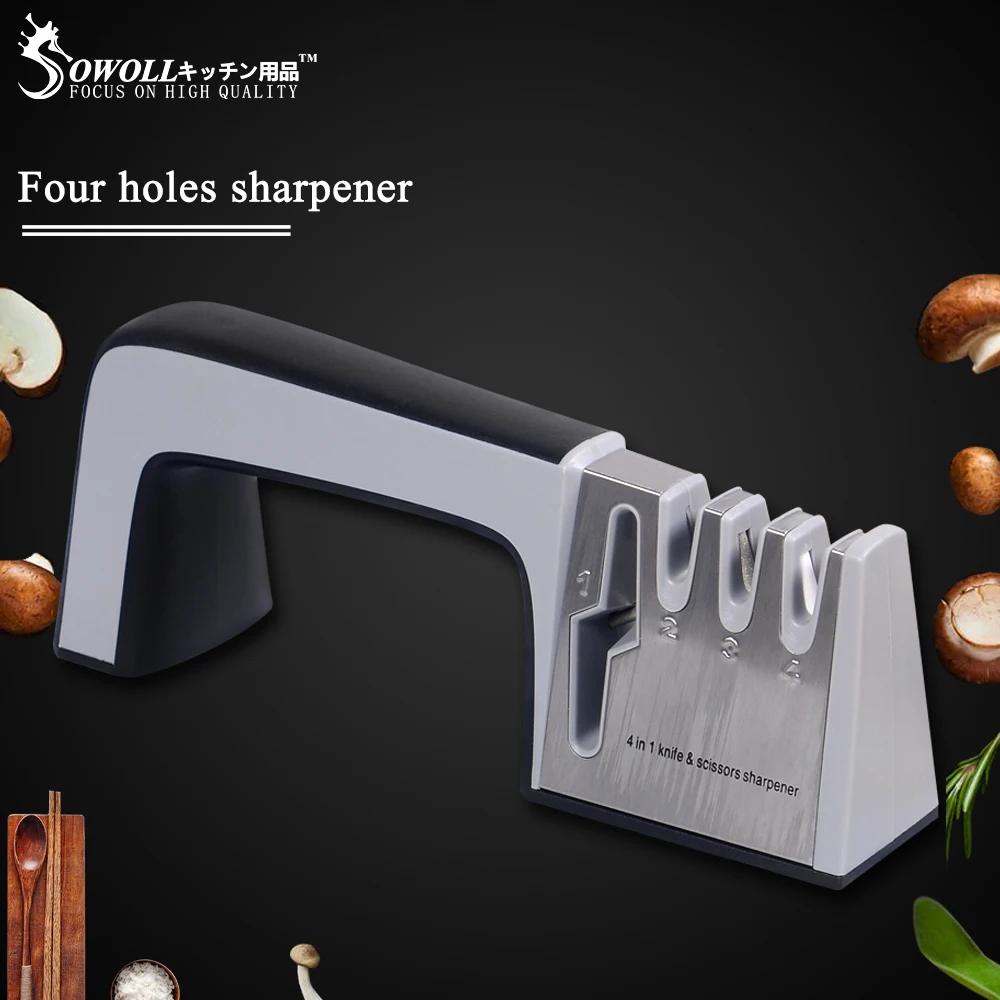 Бренд sowoll 4 отверстия точилка для ножей хорошего качества из нержавеющей стали точилка для ножей ABS ручка нож ножницы заточка системы