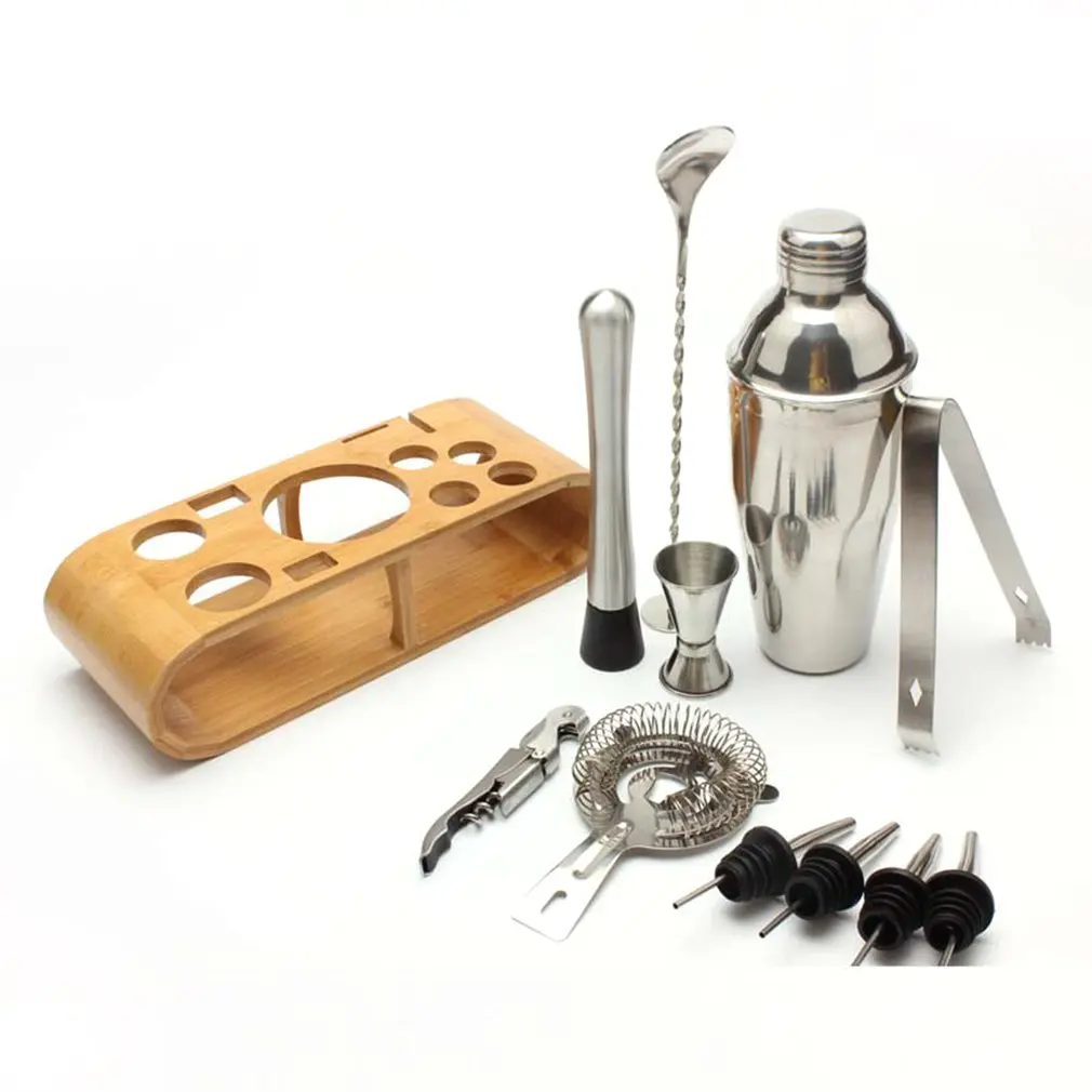 12 шт нержавеющей барный коктейль-шейкер набор с эллиптической деревянной стойкой с барменом для бармена напитки вечерние барные инструмен...