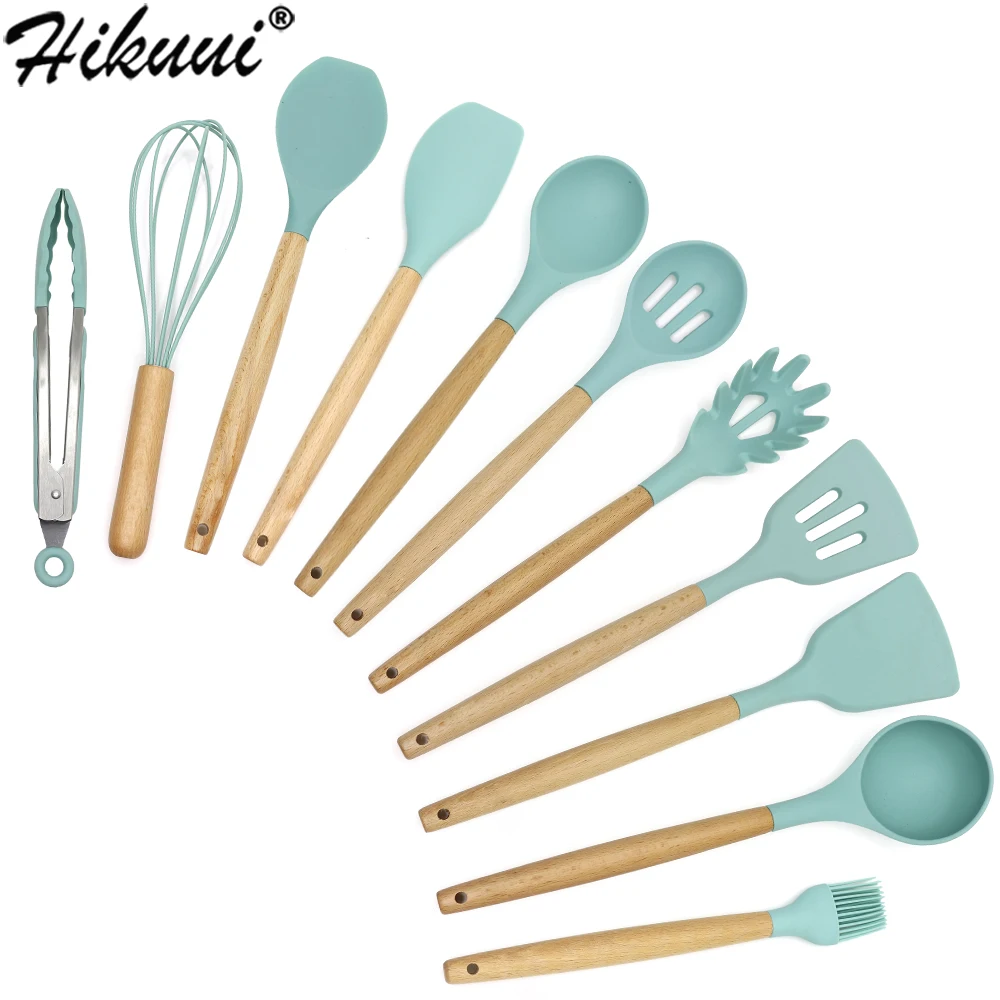 HIKUUI Набор посуды набор кухонной посуды Пищевая силиконовая деревянная ручка кухня кухонная утварь шпатель лопатка для переворачивания кух...