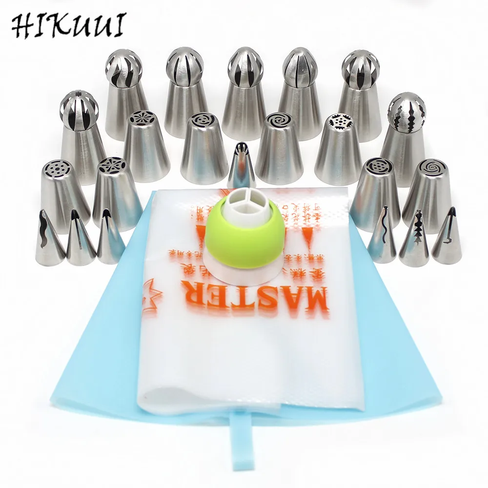 22 шт. Нержавеющая сталь украшения торта Обледенение Кондитерские Трубопроводы Насадки советы мяч Форма и русский Стиль + корейский стиль К...