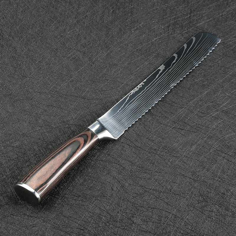 Лазерный дамасский нож для нарезки хлеба из нержавеющей стали, 8 дюймов, кухонные ножи с зубчатым дизайном, резак для нарезки хлеба, сыра, торта