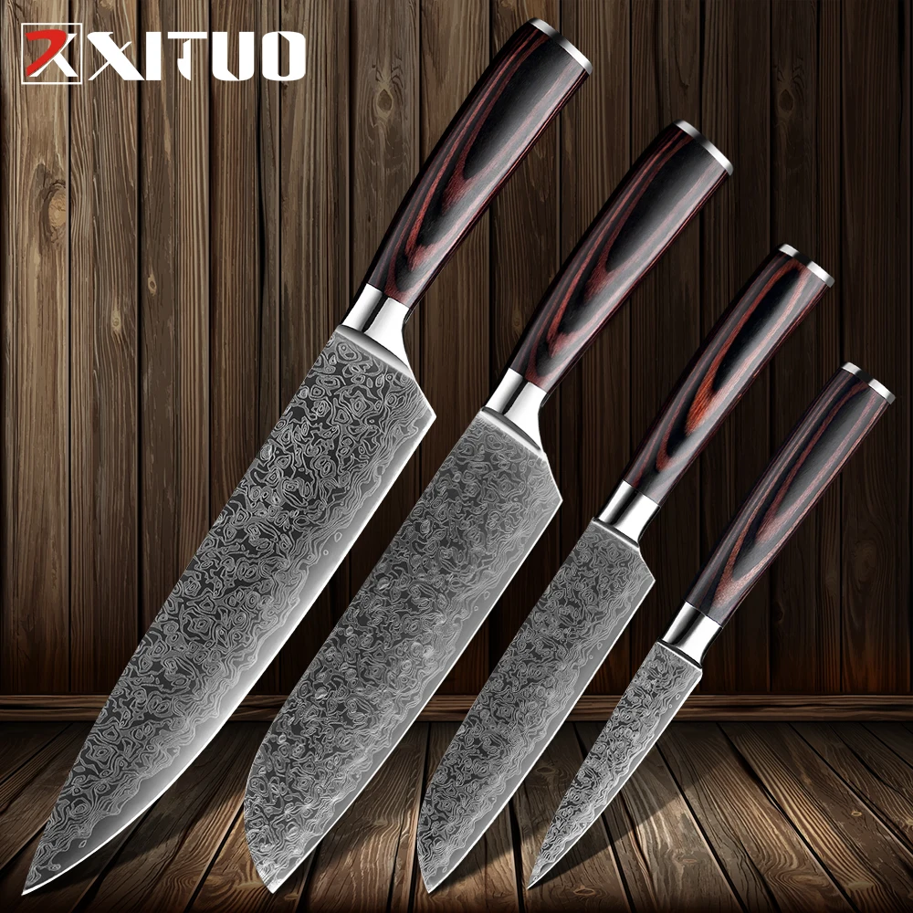 XITUO японский шеф повар ножи 4 шт. наборы для ухода за кожей имитация Дамаск нержавеющая сталь кухонные ножи Santoku пилинг нарезки утилита