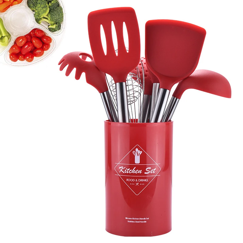 9 шт красный/черный силиконовый кулинарная ложка суповая ложка-шпатель для яиц Turner кухонные принадлежности для готовки набор посуды с хране...