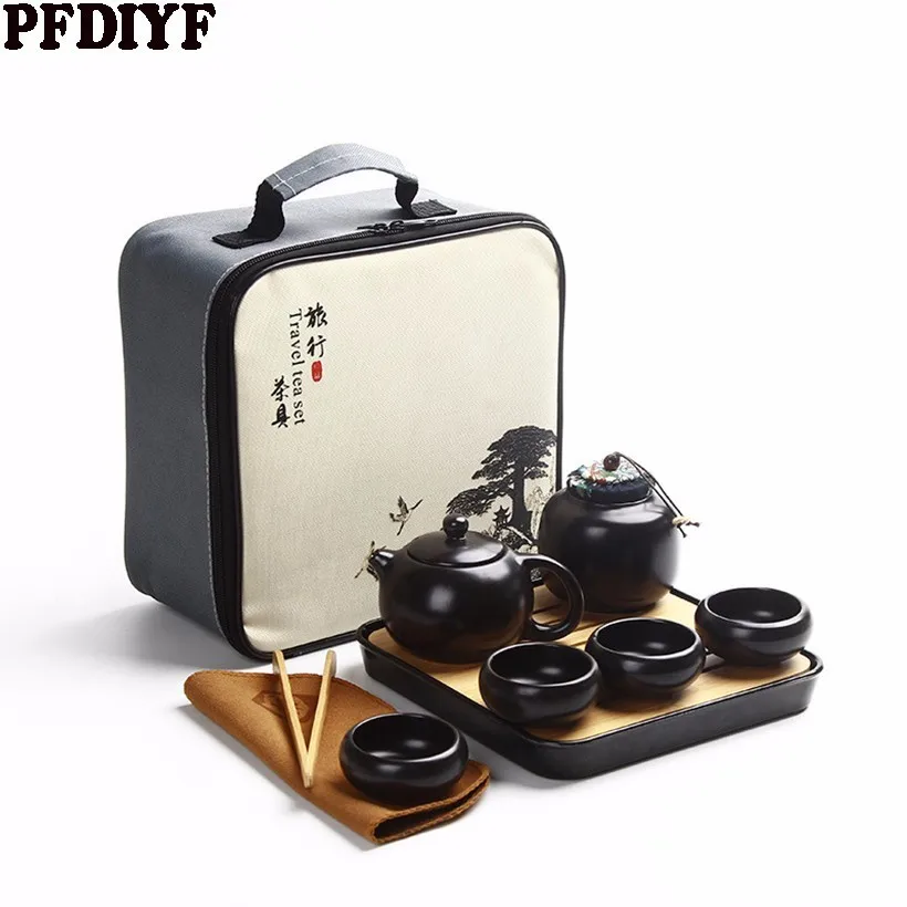 10 шт. портативный дорожный чайный набор кунг-фу керамический китайский чайник фарфоровый чайный сервиз гайванские чашки для чая чайник с су...