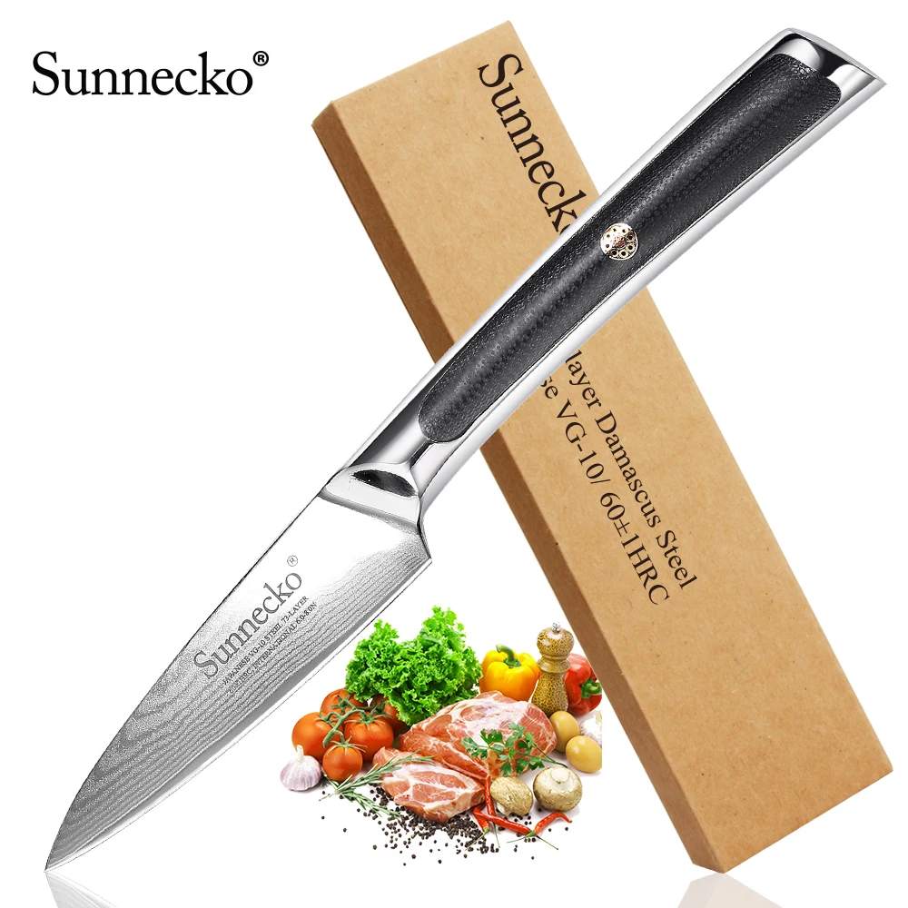 2018 SUNNECKO 3,5 "кожура Ножи Дамаск Сталь лезвие Японский VG10 Core чётко G10 ручка Кухня ножи фруктовые пилинг