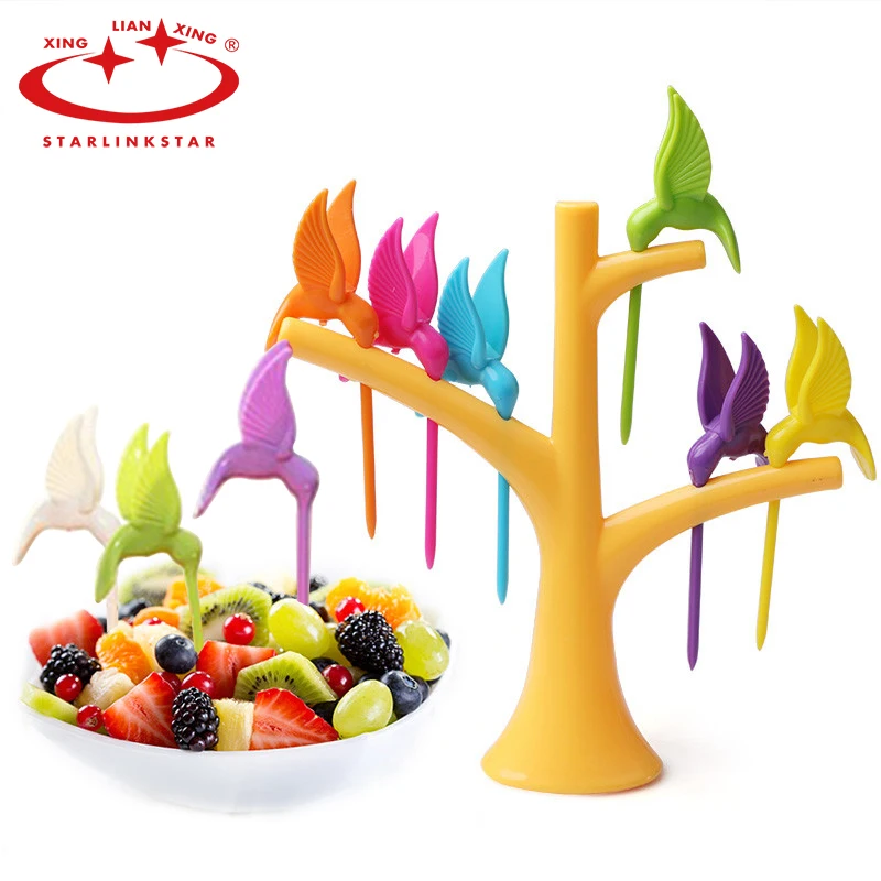 1 компл.. Деревья 6 вилки птица дерево фрукты вилка креативная фруктовая вилка Держатель Для Зубочисток вечерние домашний декор зал вилка ку...