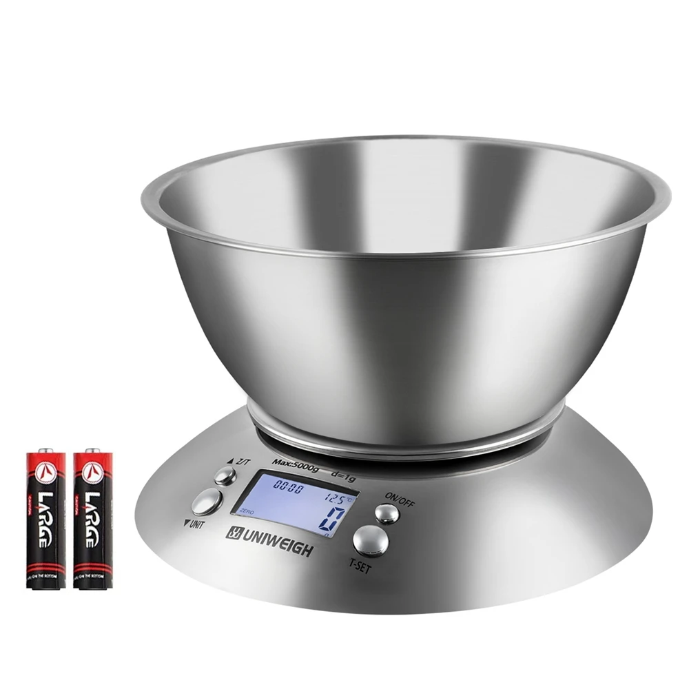 Цифровой Кухня шкалы с высокой точностью Еда весы с съемная чаша номер Температура, будильник с таймером Нержавеющая сталь весы 11lb/5 кг