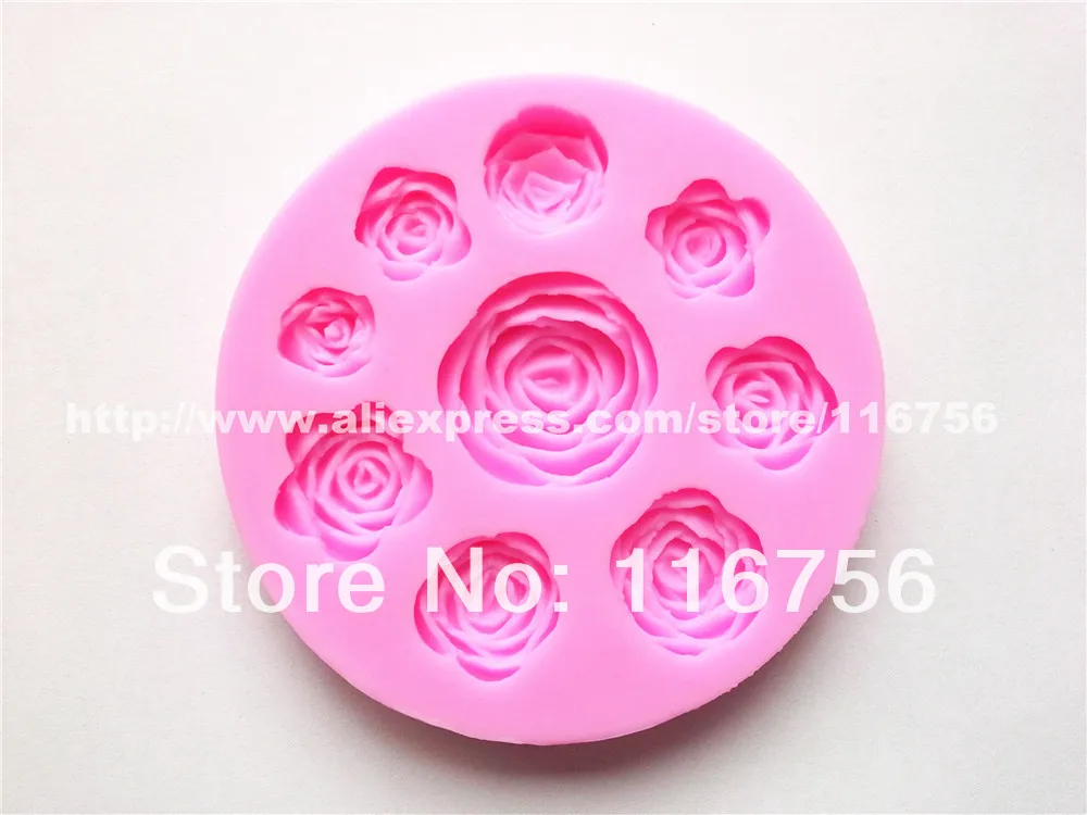 Бесплатная доставка Фондант Торт 9 полости 3D Роза Силиконовые формы сахарная паста сахар искусство инструменты торт украшение 007