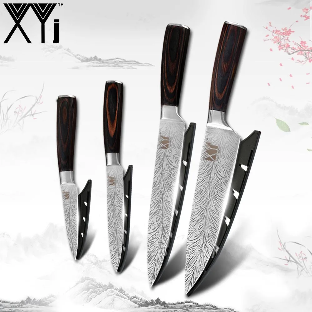 XYj нержавеющая сталь кухонные ножи набор фруктов для очистки овощей утилита Santoku шеф повар нарезки хлеба японский кухонный нож набор