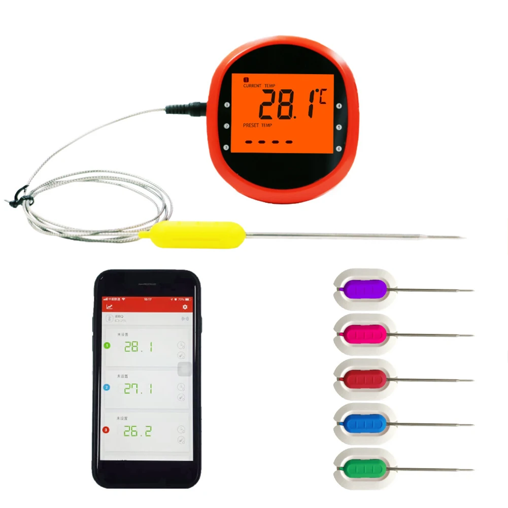 Bluetooth с зондом портативный термометр для барбекю беспроводной кухонный инструмент для контроля времени для телефона мяса из нержавеющей ст...