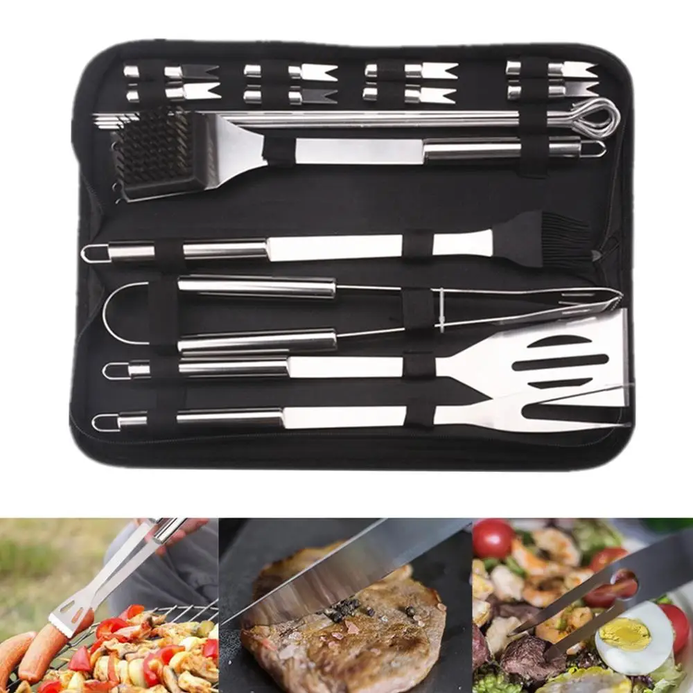 Набор инструментов для барбекю из нержавеющей стали, 26 шт., принадлежности для барбекю, принадлежности для гриля, походные инструменты для приготовления пищи, набор с алюминиевой коробкой