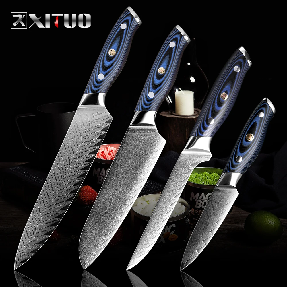 XITUO кухонный поварской нож дамасская сталь профессиональный Япония Sankotu Кливер Boning Gyuto кухонные инструменты деликатная Слива заклепочная р...