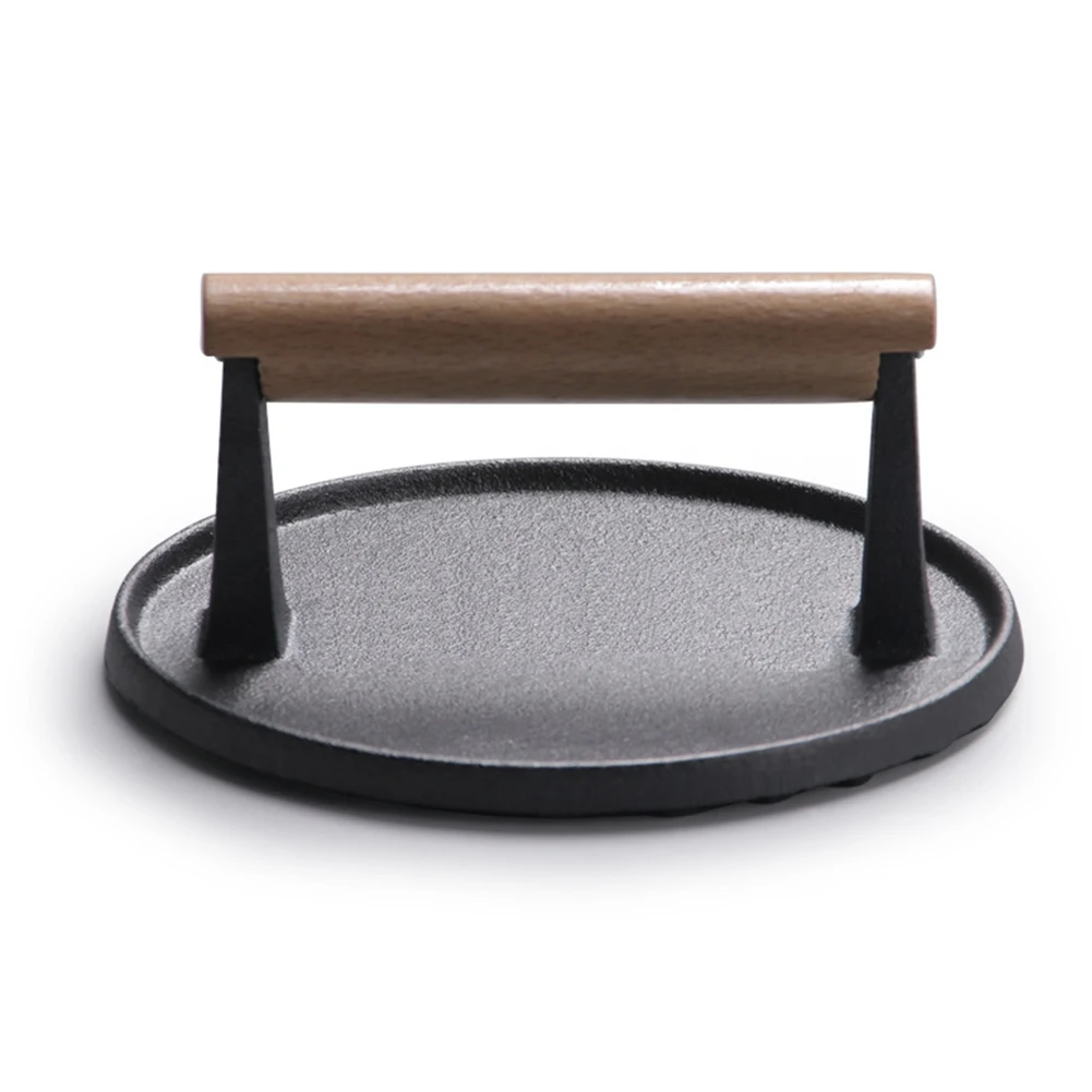 Жареный практичный чугун с ручкой Burger инструмент для приготовления пищи Мясо пресс пластина прочный круглый кухонный стейк барбекю полоса дно