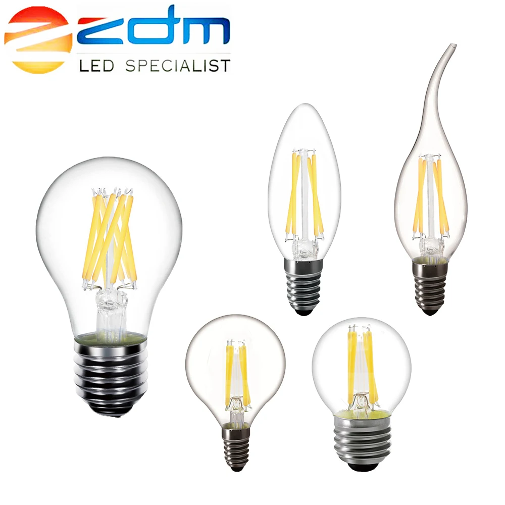 ZDM светодио дный лампа E14 светодио дный E27 накаливания свет лампы Bulbs2W 4 Вт 6 Вт Edison старинные лампы 220 В светодио дный E14 C35 декоративные