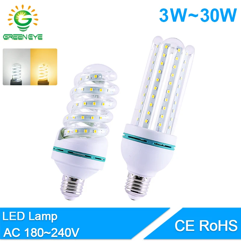 GreenEye светодиодный лампы E14 E27 3W 5 Вт 7 Вт 9 Вт 12 Вт 16 Вт 20 Вт Светодиодный светильник переменного тока 180V 240V реальный ватт светомузыка Bombilla фар д...