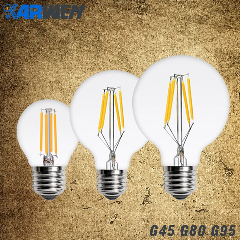 Karwen LED нити накаливания E27 g45 g80 G95 220 В под старину Винтаж светодиодные лампы Эдисона 2 Вт 4 Вт 6 вт 8 Вт Стекло мяч Bombillas светодиодные лампы