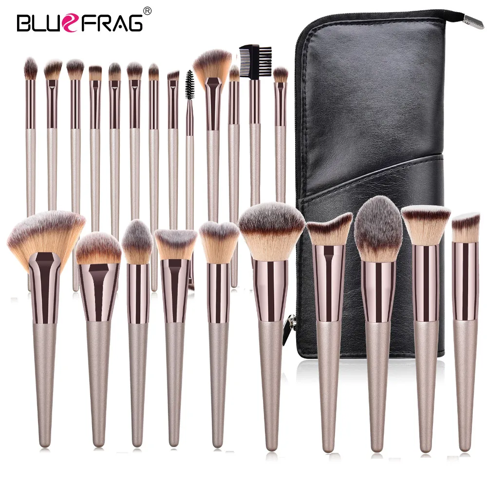 BLUEFRAG Pro 6-23 шт., набор кистей для макияжа, пудра, кисть для основы, тени для век, Кисть для макияжа губ с портативным полиуретановым чехлом, инструменты для красоты