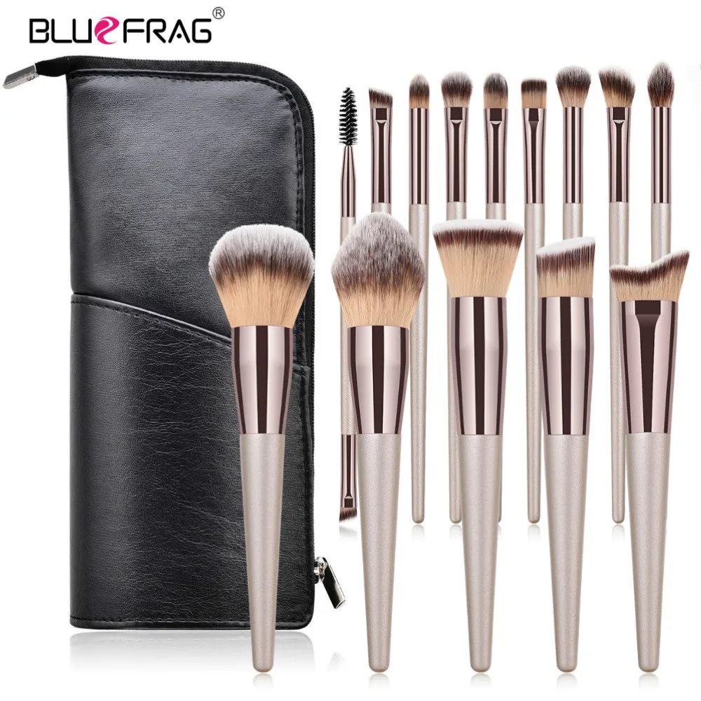 BLUEFRAG кисти для макияжа, высокое качество, 6-14, набор кистей для макияжа с сумкой для путешествий, пудра, румяна, тени для век, консилер для губ, инструмент для красоты глаз