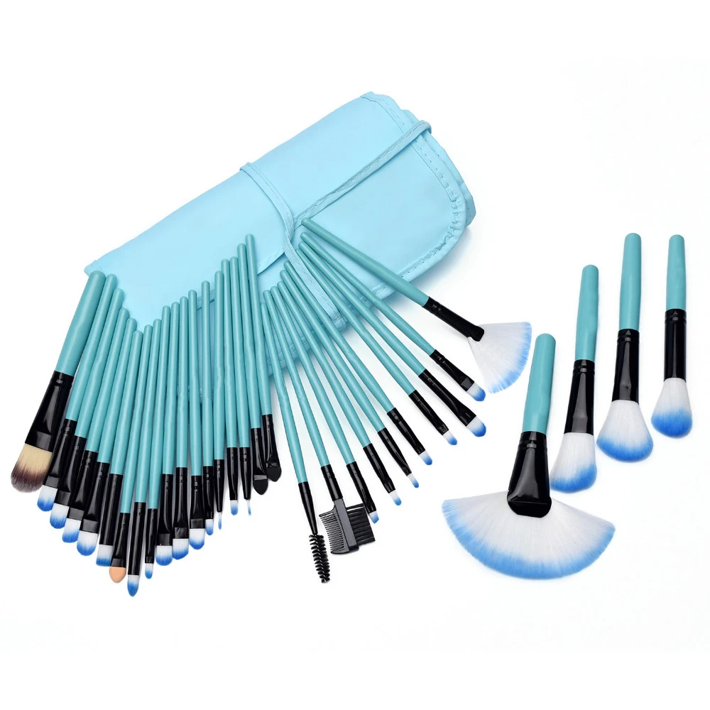 Профессиональные кисти для макияжа 32 шт., основы для макияжа, порошковые тени для век, синие кисти для макияжа, инструменты, косметичка, кисти для макияжа