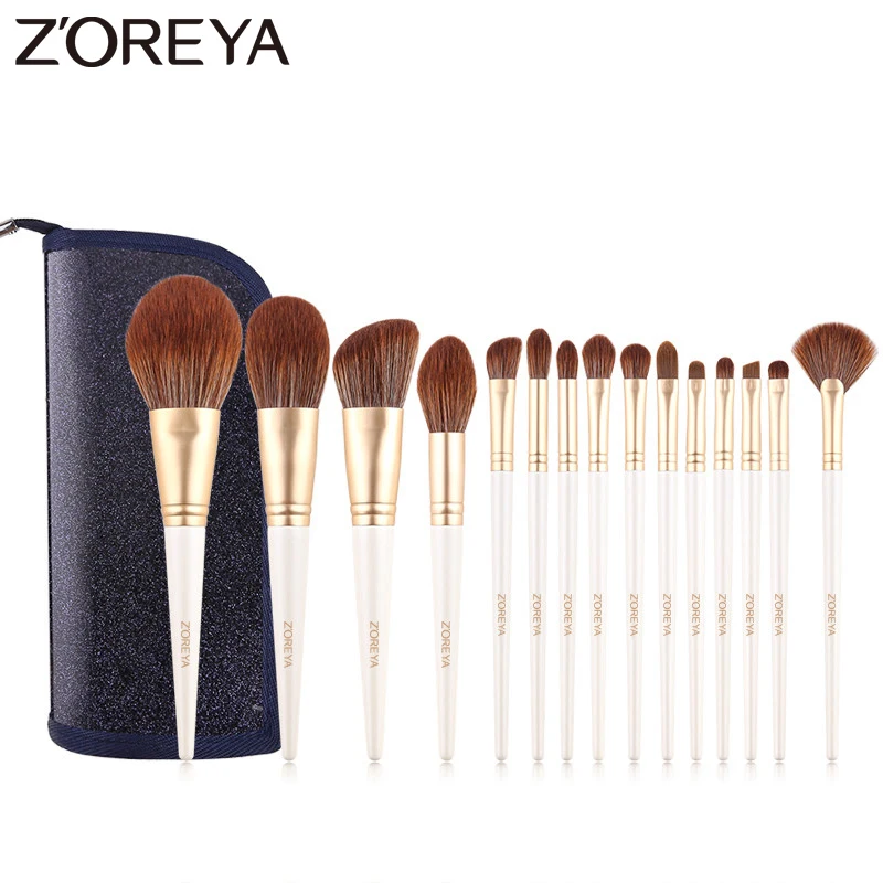 Бренд Zoreya 15 шт. белый набор кистей для макияжа супер мягкие синтетические волокна хайлайтер тени для глаз порошок Pro Косметический набор с ч...