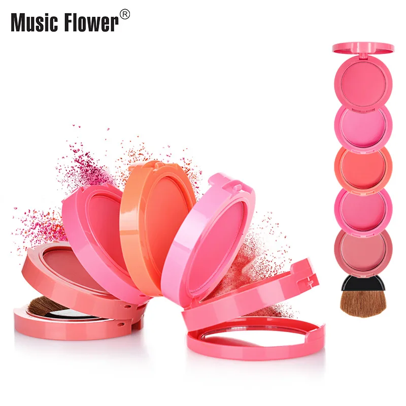 Музыка цветов пять-история Румяна Палитры длительный пигмент 5 цветов Румяна er Палитры Макияж бренд с зеркалом и кисточки