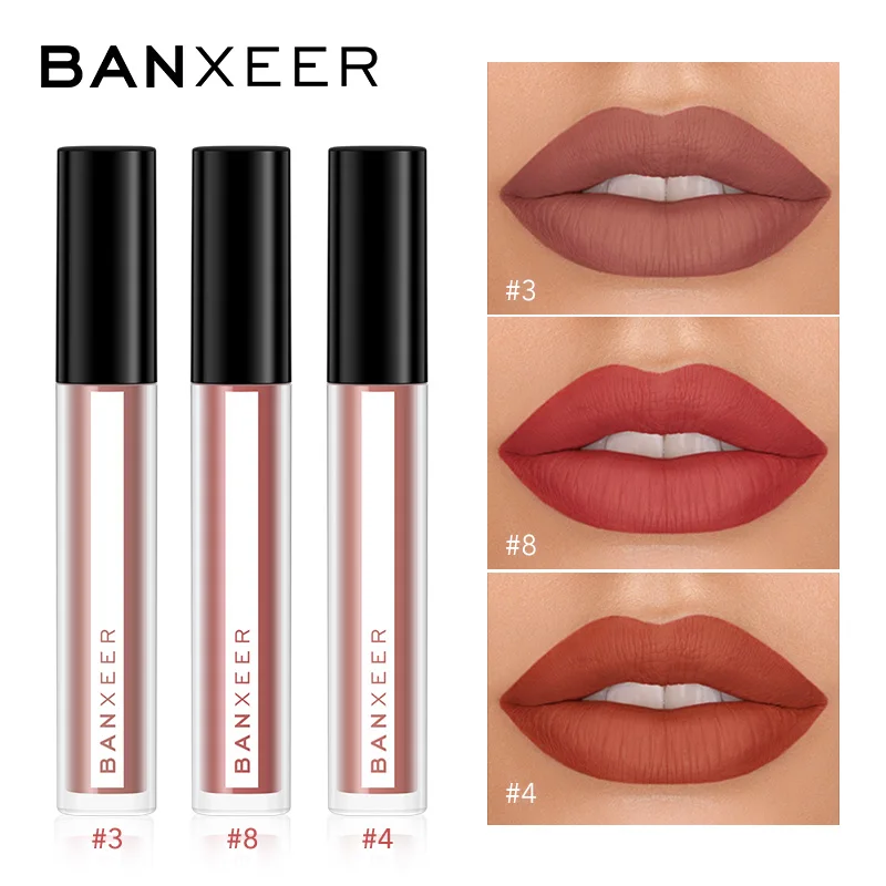 Блеск для губ BANXEER 3 шт./компл., матовый блеск для губ, водонепроницаемый, долговечный, матовый, жидкая губная помада, макияж губ, косметика