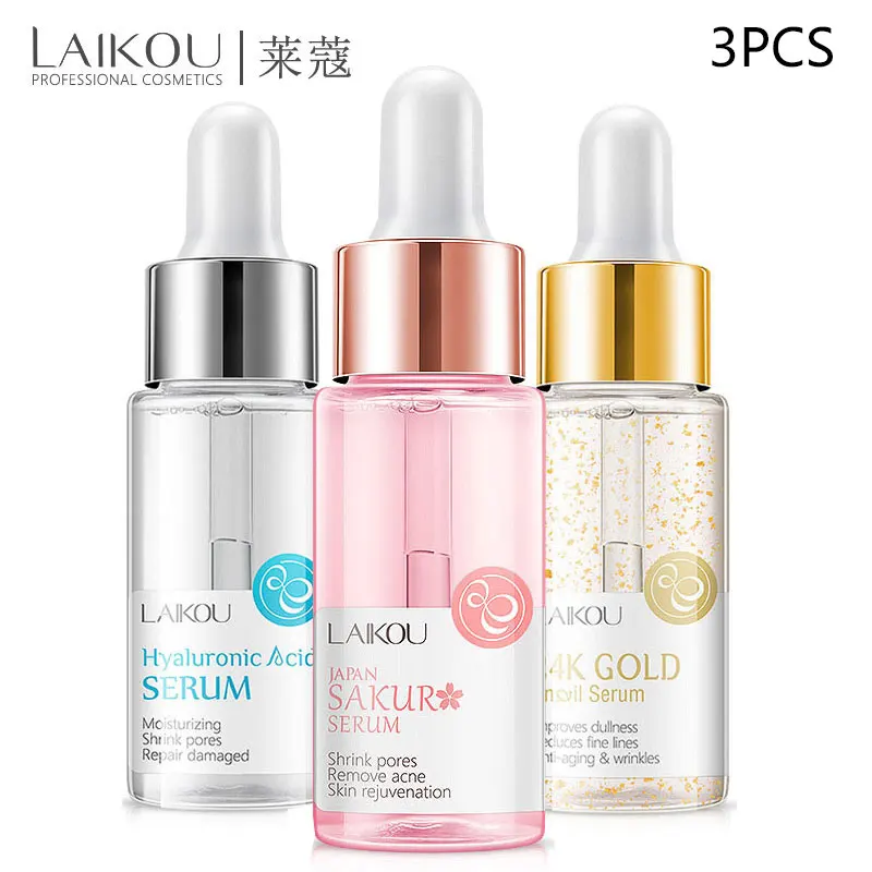 24 k Золотая улиточная Сыворотка против старения морщин + Японская Сакура сыворотка + Гиалуроновая кислота Отбеливающая увлажняющая эссенци...