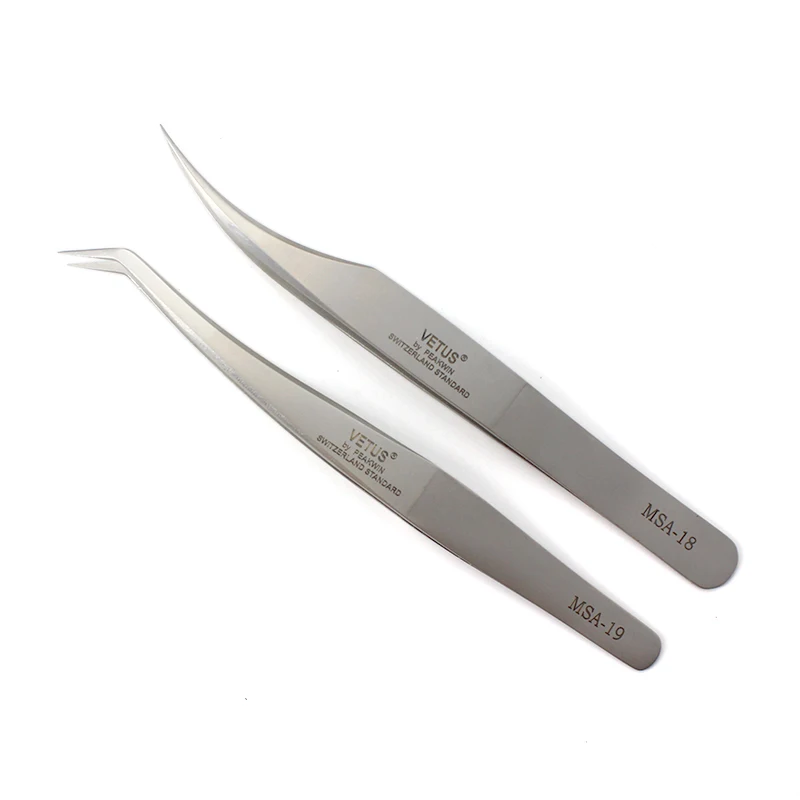 100% натуральная Vetus MSA серии для наращивания ресниц ультра жесткость точность нержавеющей изогнутые пинцеты