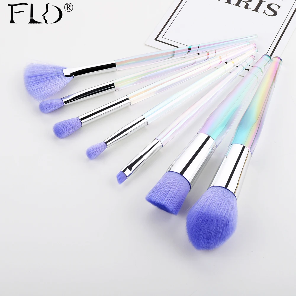 FLD 7 шт цветная Кисть для макияжа Набор кристальных румян кисть набор подводка для глаз Пудра основа вентилятор лицо набор кисточек для маки...