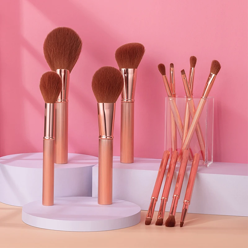 Мини-набор кистей для макияжа, пудра, основа для макияжа, кисть для бровей, тени для век, косметические инструменты для макияжа, набор туалетных принадлежностей для женщин, для девочек, 10 шт./компл.