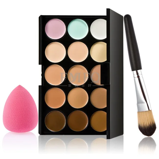 15 цветов Корректирующее средство для макияжа набор кистей + водяная пуховка супер Комбинация набор для макияжа Pro Палитра кистей Губка puff