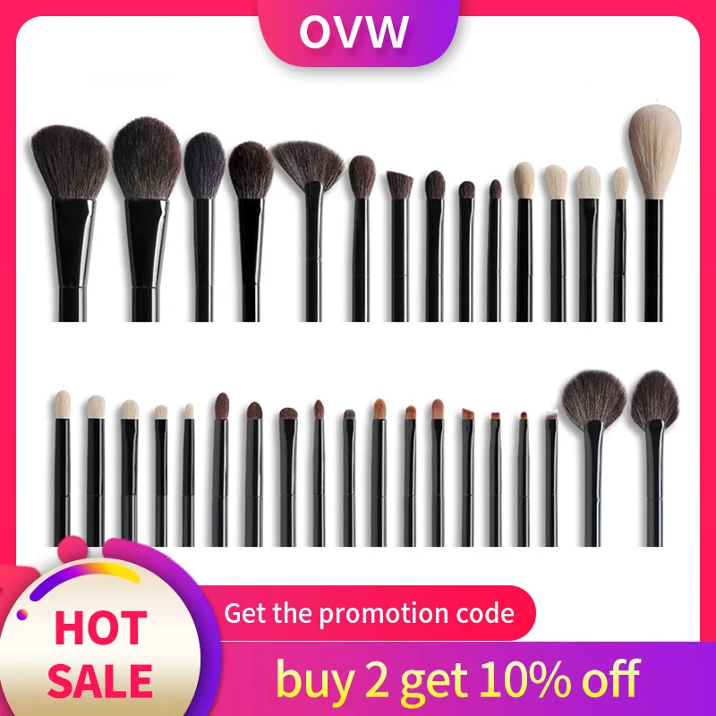 OVW профессиональный косметический набор из натурального козьего волоса для лица, набор кистей для макияжа глаз с черной деревянной ручкой ...