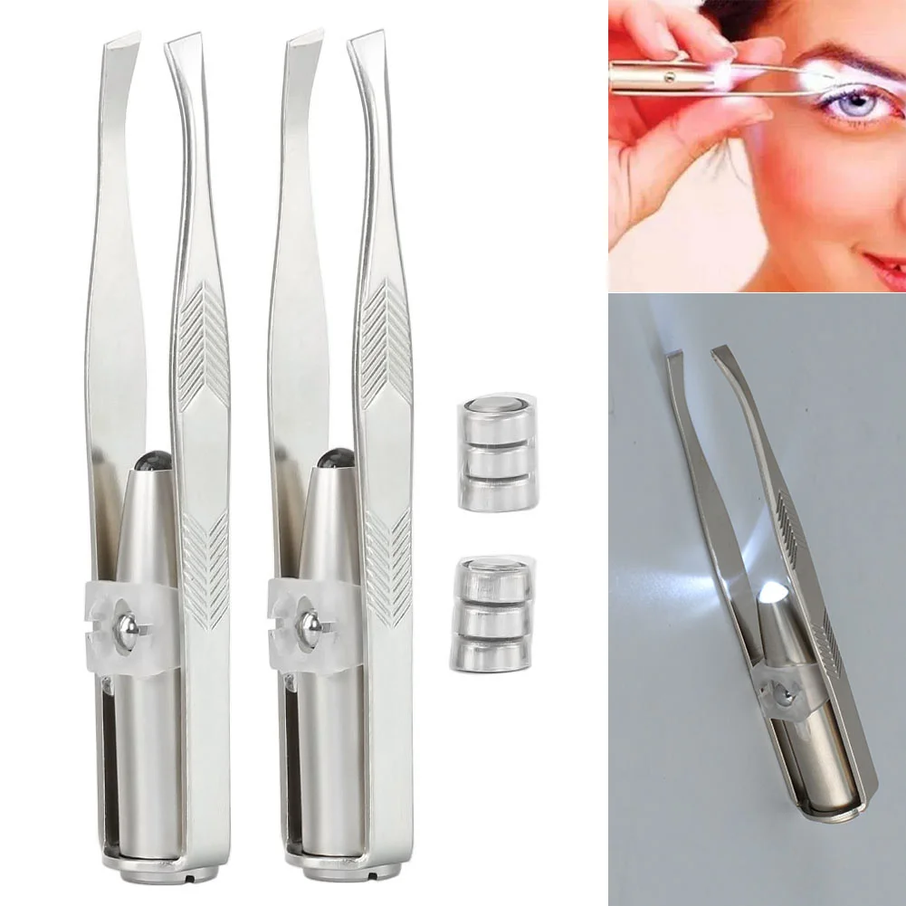 2 шт. нержавеющей Syeel Макияж Инструмент ресниц бровей удаления волос пинцет со светодио дный подсветкой Pinzas Para Cejas