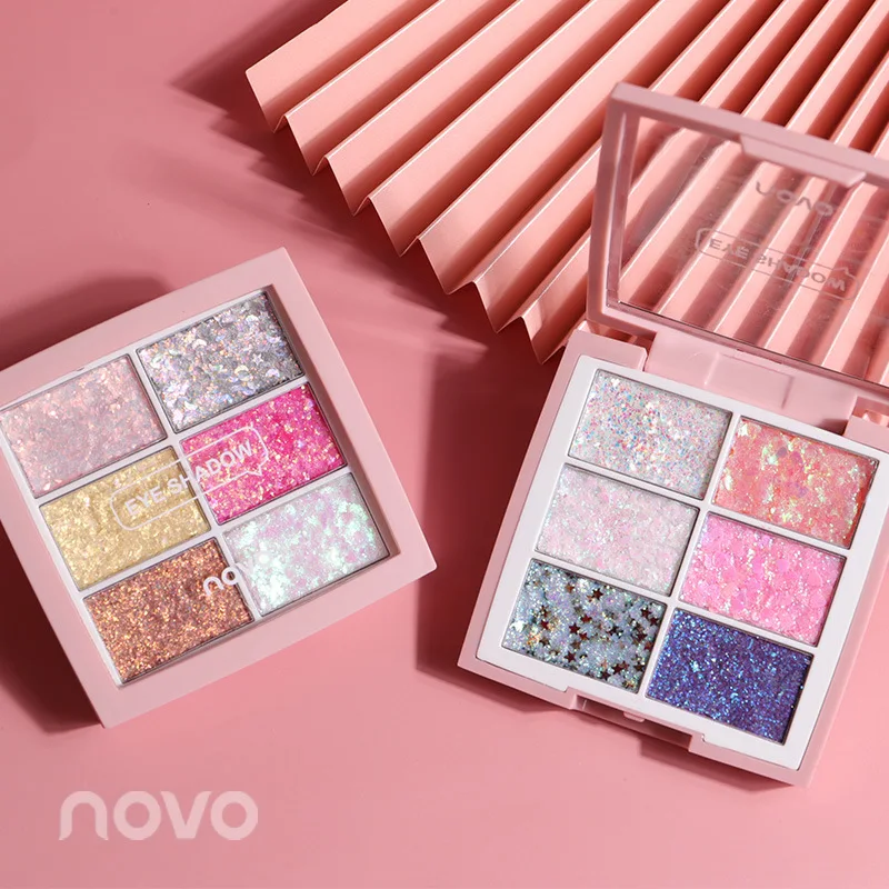 Бренд NOVO 6 видов цветов блестки тени для век палитра для макияжа перламутровые мерцающие тени для век водостойкая Пудра Косметика