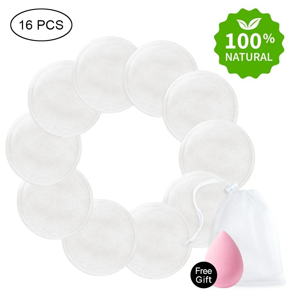 Накладки для снятия макияжа многоразовые 16 упаковок моющиеся очищающие хлопковые салфетки для снятия макияжа трехслойные мягкие бамбуков...