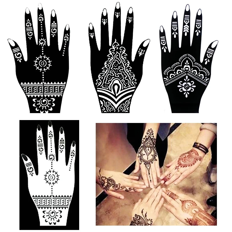 3 шт./лот для рук и ног трафареты для татуировок хной набор для ухода за телом Краски, Аэрограф Для блесток цветок михенди, татуировки шаблоны...