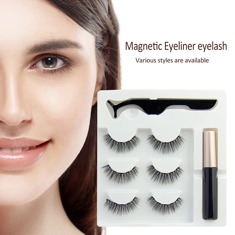 3 пары Набор накладных ресниц с пинцетом, наборы для макияжа, магнитная подводка для глаз, жидкая густая и Завитая линза, набор для макияжа