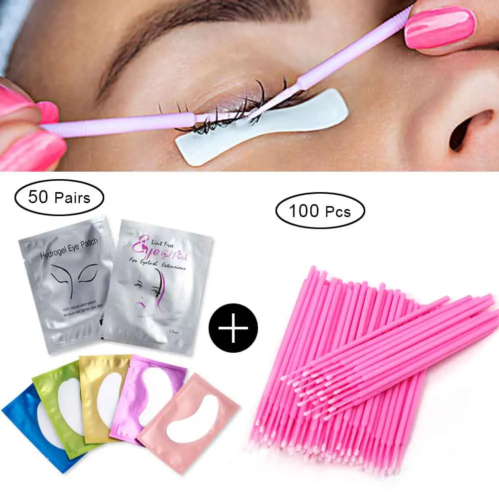50 пар подушек для наращивания ресниц под подушечками для глаз и 100 шт Одноразовые микро щетки для ресниц ватные палочки для макияжа ресниц