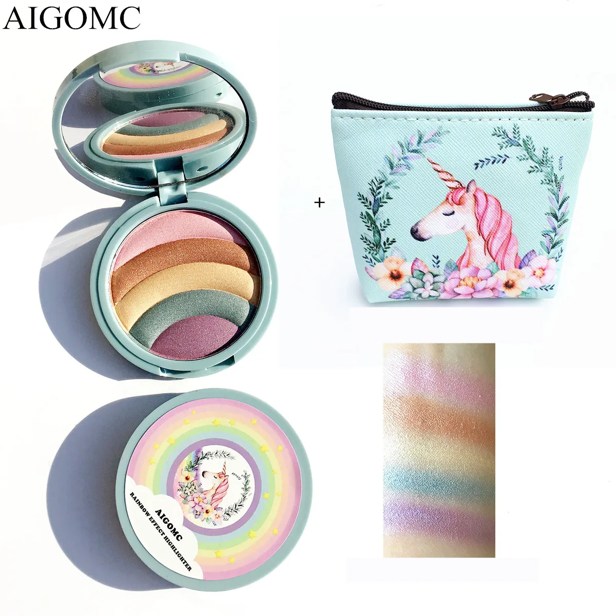 AIGOMC Единорог комплект свечения маркер 5 цветной хайлайтер палитра контура лица Радужный Хайлайтер с косметичка набор для макияжа