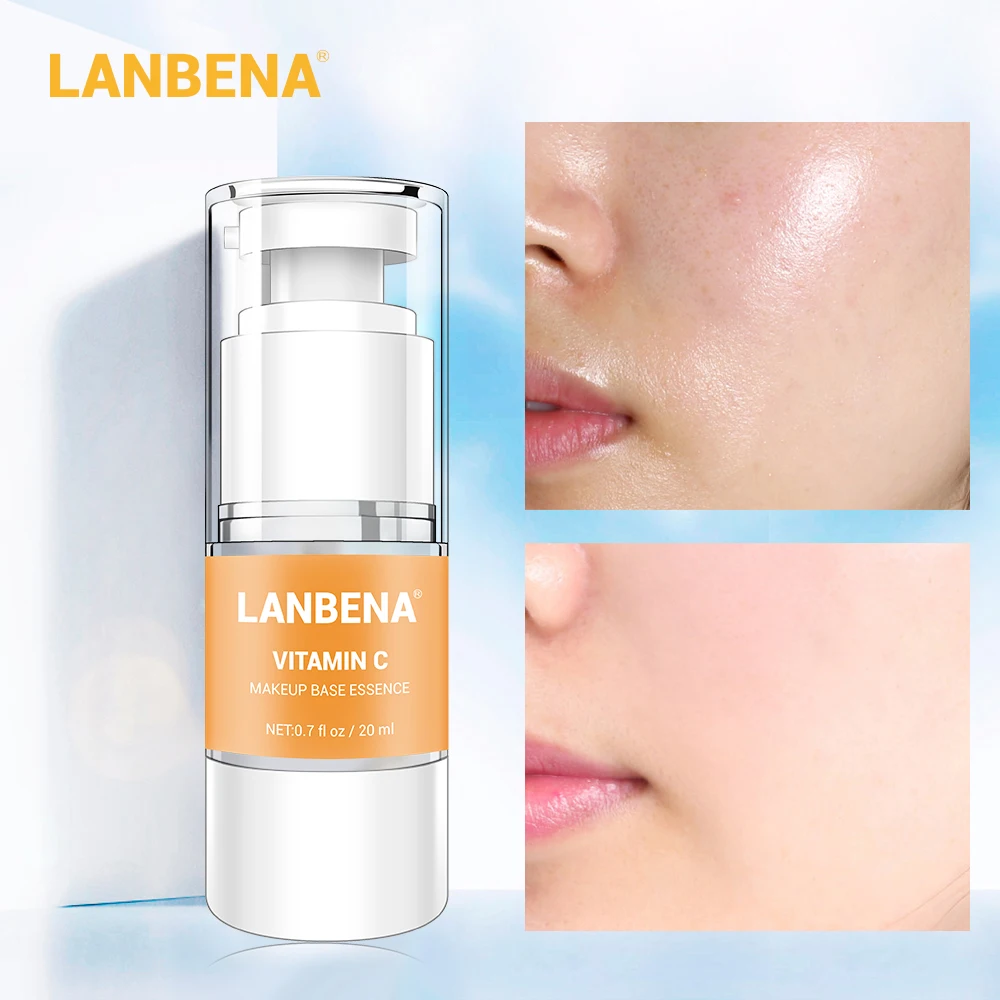 LANBENA, 20 мл, витамина С, грунтовка для макияжа, отбеливающая основа для макияжа лица, эссенция, сужающая поры, гладкая кожа, тонкие линии, масло-...
