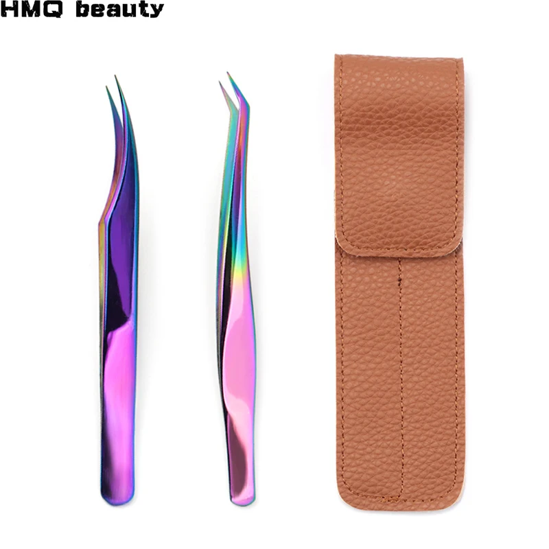 Профессиональный пинцет для наращивания ресниц из нержавеющей стали, Антистатическая точность и пинцет, коробка для хранения, набор кожаных пакетов