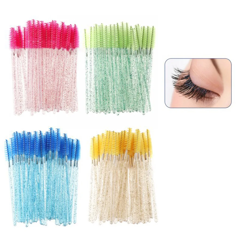 50 шт., блестящий одноразовый аппликатор для ресниц, палочки, набор кистей для завивки, тушь для бровей, ложки, расческа, палочки, кисти