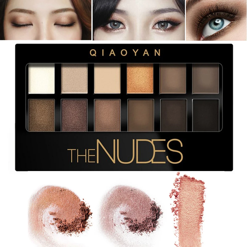 QIAOYAN обнаженные земли Макияж Палитра теней 12 Цветов ярче Smoky Eye Shadow Shimmer матовый Профессиональный минеральная Водонепроницаемый